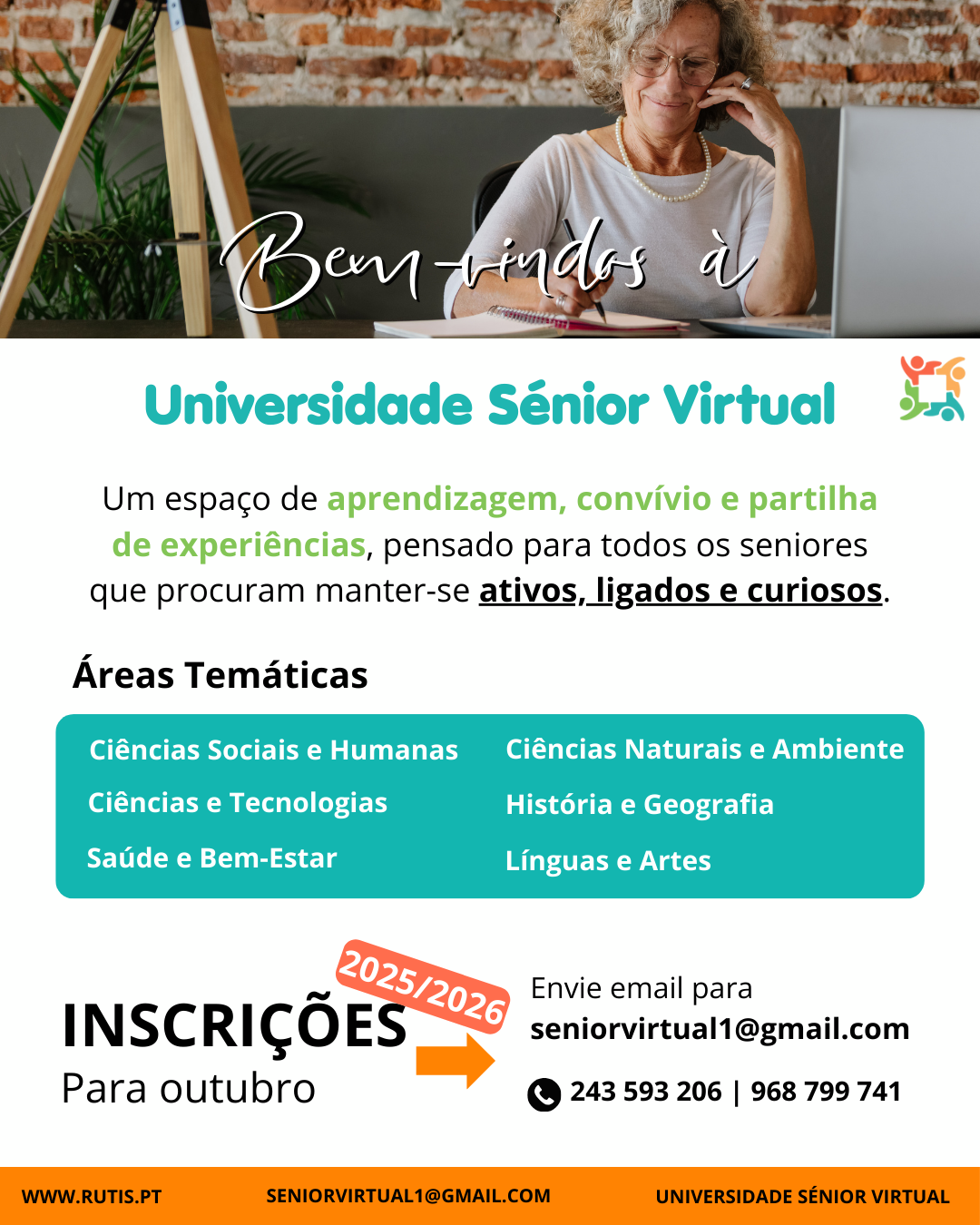 A Universidade Sénior Virtual da RUTIS já tem inscrições abertas para o ano letivo 2025/2026!